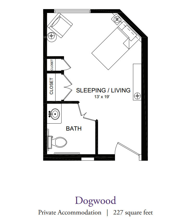The Christopher Center at Our Lady of Peace is designed as a pavilion featuring a bright atrium with a central area made up of a nurse’s station, music room, sunroom, dining room, and activity room. Resident suites surround the central living area. To provide familiarity and recognition, each suite features a Memory Box just outside the door that showcases a resident’s personal photos and mementos. In addition, all of the indoor spaces are lit in such a way as to create a calm ambiance, and a secure courtyard allows residents to enjoy the outdoors whenever they like.